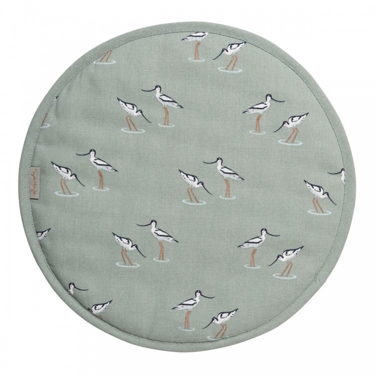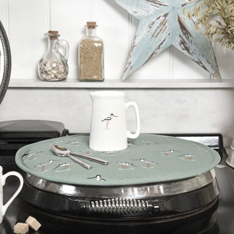 The design features Sophie Allport's Coastal Birds design, decorated with avocets, the British wading bird with curving bill and long legs disappearing into rippled grey-green water.