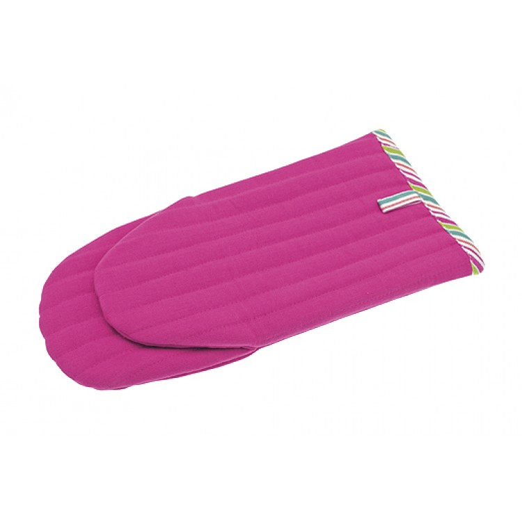 This oven gauntlet from the Walton and Co factory in Knaresborough, North Yorkshire, ticks every box. The company is British and old as the hills (or, to put it more literally, old as the mills). The quality is unmistakeable and the vibrant pink design, with colourful stripey trim, has proved very popular with our customers.